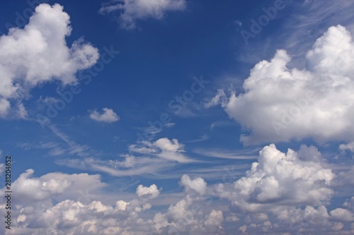 Obraz premium Ładne niebieskie niebo latem z białymi chmurami