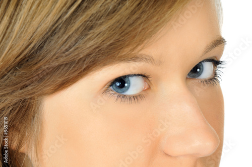 © Dzimitry Valiushka, Obraz premium Ładne oczy, na białym tle. skup się na dalekim oku