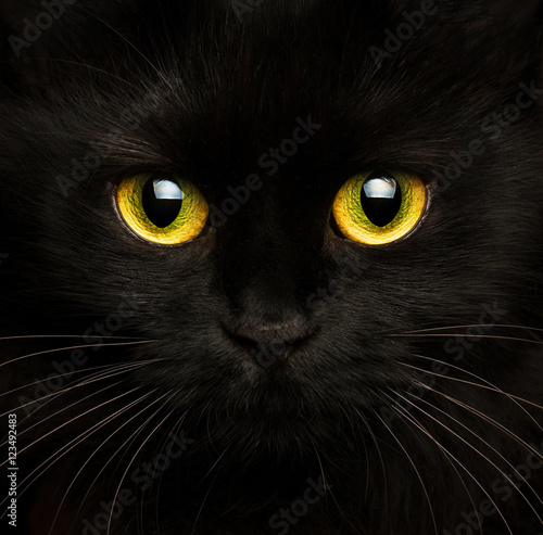 © vladstar, Obraz premium Ładny pysk czarnego kota z bliska