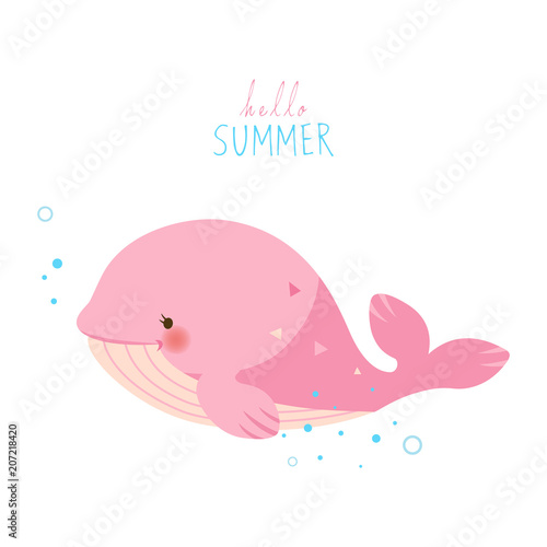 © soyon, Naklejka premium Ładny różowy wieloryb na białym tle