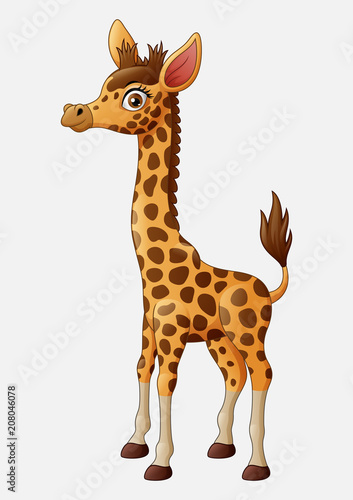 © ekyaky, Fototapeta premium Ładny żyrafa kreskówka na białym tle