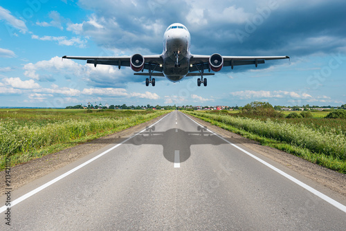 © serjiob74, Naklejka premium Lądowanie samolotu pasażerskiego.