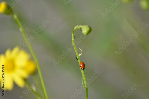 © Vincenzo, Obraz premium Lady bug on a flower stem in spring