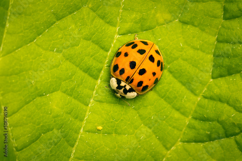 Obraz premium Lady bug slowly approching its lunch