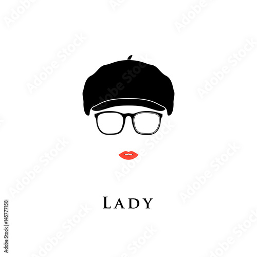 © greens87, Obraz premium Lady in vintage beret and glasses