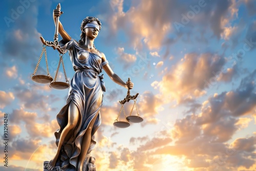 © yachyah, Fototapeta premium Lady Justice Statue Against a Dramatic Sky