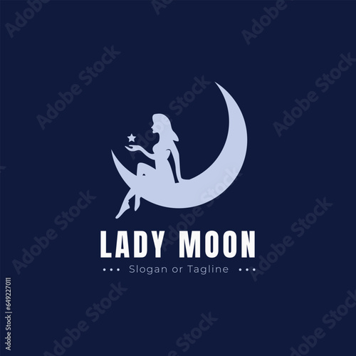 © Yuni25, Obraz premium Lady play with star above the moon logo icon design on the sky. vector