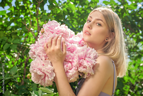 © Andrey Kiselev, Fototapeta premium lady with peonies