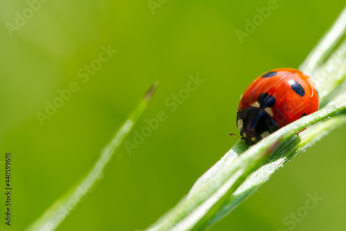 © Ilja, Fototapeta premium ladybird at morning on green leaf. close-up