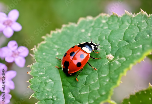 Obraz premium Ladybird on green leaf