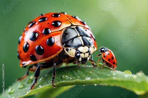 © Maruf, Obraz premium Ladybug Among the Leaves