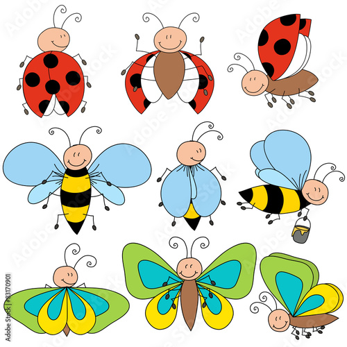 Naklejka premium Ladybug, bee and butterfly drawing cute character