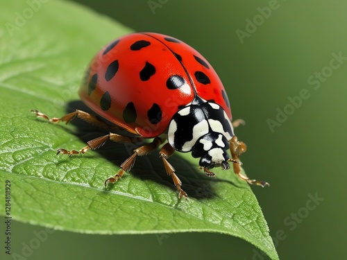 © Creative Art, Obraz premium Ladybug beetle on green leaf, nature macro