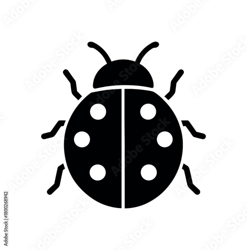 © Framezy, Obraz premium ladybug flat black solid vector illustration isolated on white background