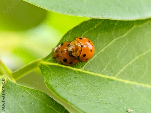 Fototapeta premium Ladybug insects are undergoing a natural reproduction process