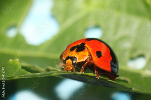 © TATCHAMALAI, Obraz premium Ladybug on a green leaf