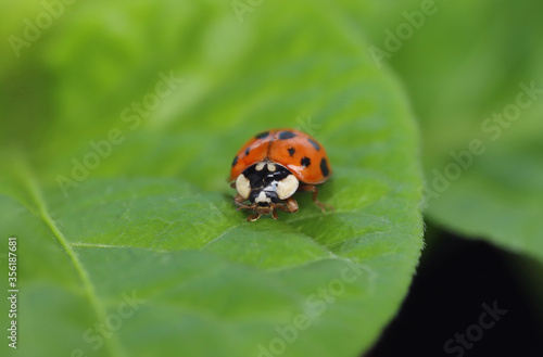 Obraz premium Ladybug on a green leaf