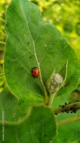 © Дарья Рычкова, Fototapeta premium ladybug on a green leaf