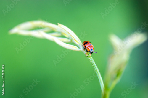 © sapgreen, Fototapeta premium ladybug on a green leaf macro