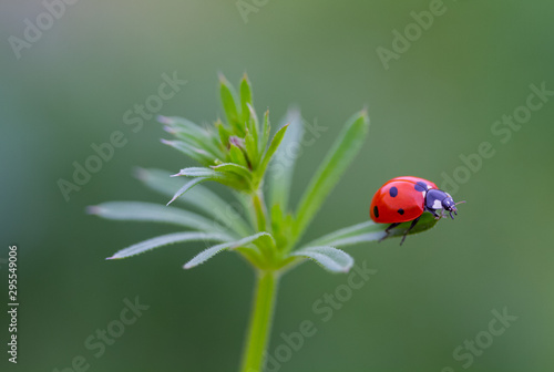 © mehmetkrc, Obraz premium Ladybug on a green leaf macro