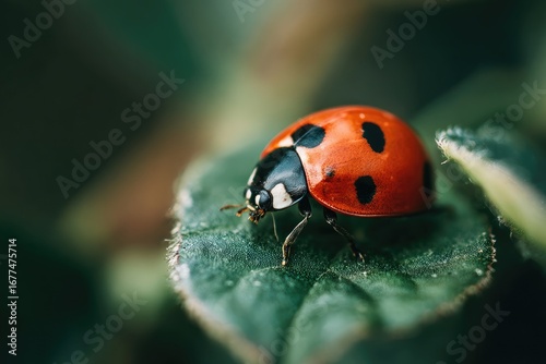 © Pororo, Obraz premium Ladybug on a leaf (1)