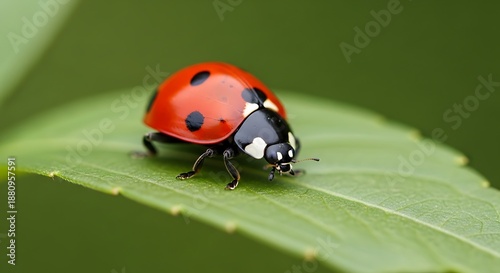 © clara, Fototapeta premium Ladybug on a Leaf - A Close-Up of Natures Beauty.