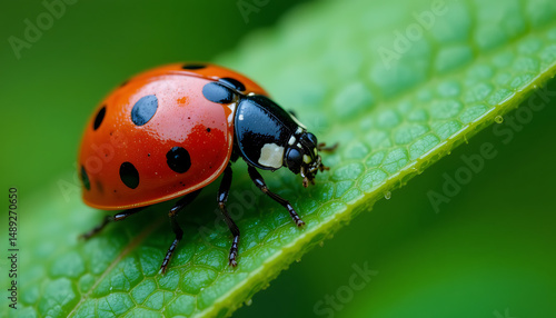 © Ghayoor, Naklejka premium ladybug on a leaf ladybug on green leaf beautiful view and seen beautiful background and wallpaper hd picture