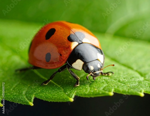 © Bagas, Obraz premium Ladybug on a vibrant green leaf