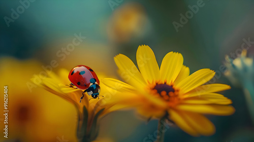 © ichie, Fototapeta premium Ladybug on a Yellow Flower - Macro Photography