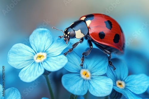 © atha_lintar, Obraz premium Ladybug on Blue Flower