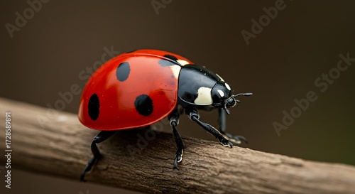 © faren, Obraz premium Ladybug on branch closeup