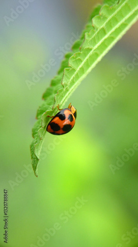 © IvanderJR, Obraz premium ladybug on green leaf