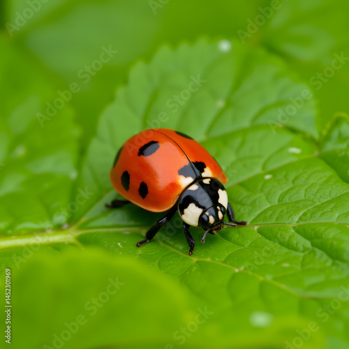 © Nataly, Fototapeta premium Ladybug on green leaf