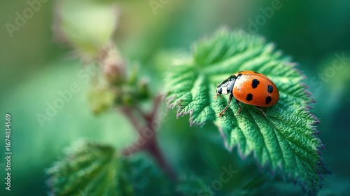 © Asmaa_Asmadi, Obraz premium Ladybug on Green Leaf