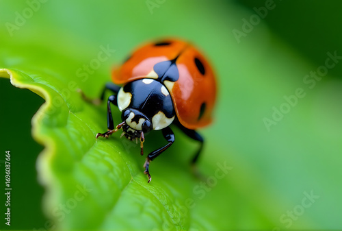 © Mingwei Xue, Fototapeta premium ladybug on green leaf