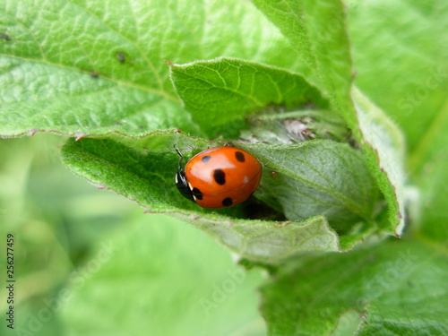 © Nina Fedorova, Fototapeta premium ladybug on green leaf