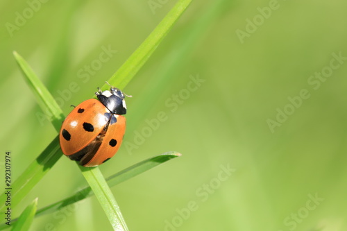 © ramund88, Obraz premium ladybug on green leaf