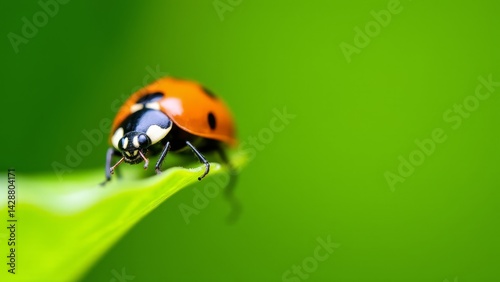 Fototapeta premium Ladybug On Green Leaf, Close-Up View