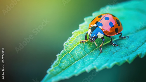 Fototapeta premium Ladybug on green leaf: nature's tiny wonder close-up for educational and...