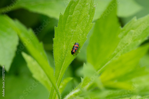 © piphagorikha, Naklejka premium ladybug on leaf