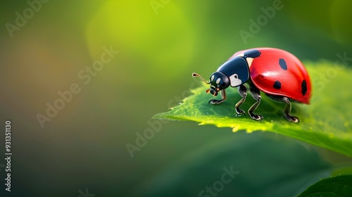 © Farid, Obraz premium ladybug on leaf.
