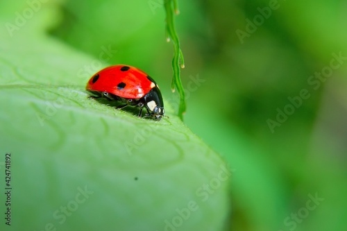 © Ali, Naklejka premium ladybug on leaf revealing nature and insect world. biological pesticide that controls pests.