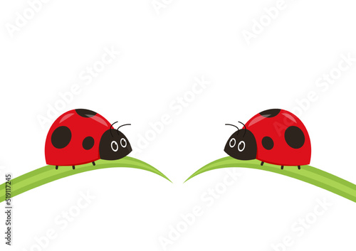 © Supakorn, Fototapeta premium Ladybug on leaf. wallpaper. free space for text. background. symbol. ladybug on white background.