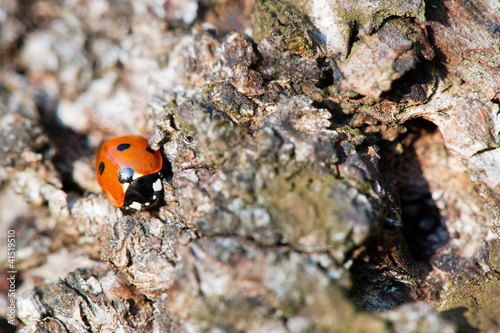 © Ivonne Wierink, Fototapeta premium Ladybug on tree trunk