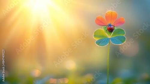 © TITISCAHYA, Obraz premium Ladybug on vibrant clover in sunlight