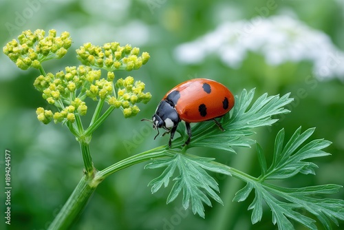 © neirfy, Obraz premium ladybug perched on parsley leaf