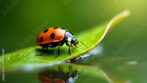© Gayan, Obraz premium Ladybug Resting On A Green Leaf