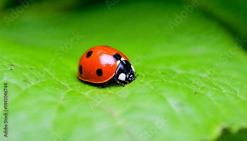 © willem, Fototapeta premium Ladybug Resting on Bright Green Leaf in Natural Garden Setting
