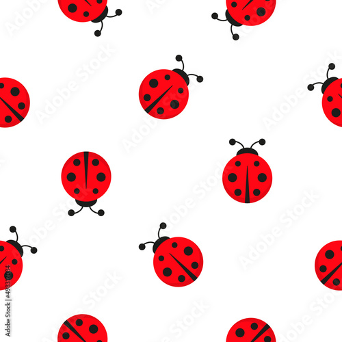 © Віталій Баріда, Naklejka premium Ladybug seamless pattern. Ladybirds insects flying. Vector isolated on white background.