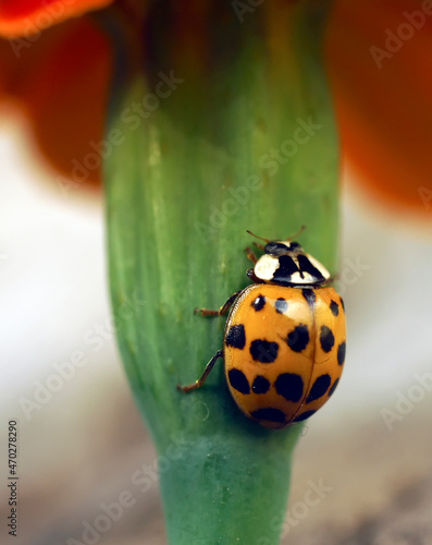 © sokoloffoto, Fototapeta premium Ladybug sits on beautiful flowers